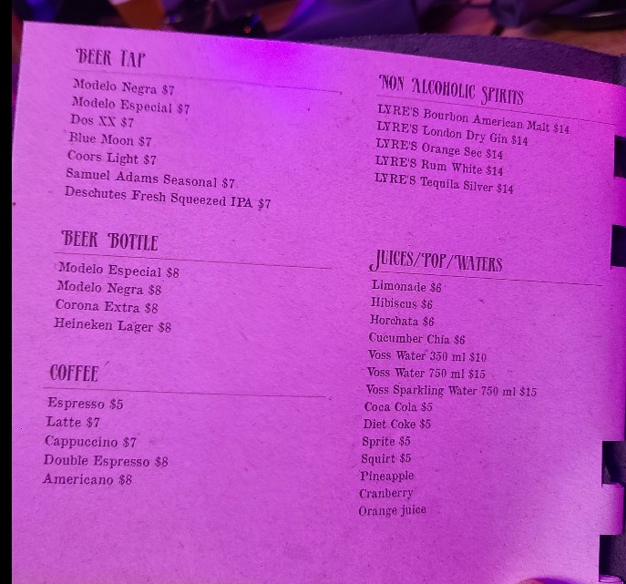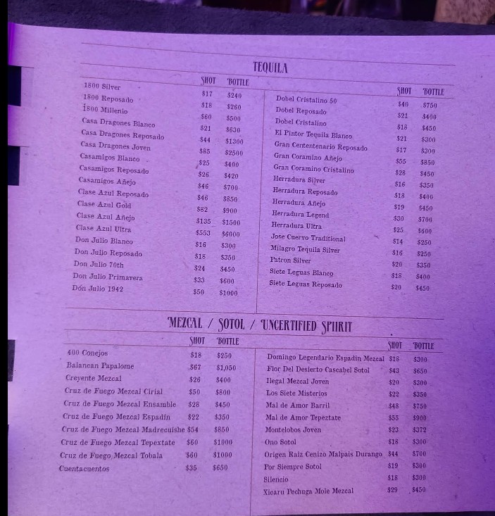 My experience: The service provided by our server was significantly below expectations. Throughout the evening, our table was not cleaned. We had a stack of 15 menus that remained untouched, and I eventually had to clear the finished plates myself, which our server also failed to collect even after we stacked them. Additionally, the specialty drinks, priced between $15 and $25, appeared to contain no alcohol. When we requested shots, they were prepared but left sitting at the bar. We had to remind our server at the end of the night to bring them to our table. Given that it was a Wednesday and the restaurant did not seem busy, this level of inattentiveness was surprising. While I found the tacos to be enjoyable, the overall value for money was poor. I paid $60 for three tacos and two drinks, and the quality of service was unacceptable. I left a few stars because the interior design is very cool!